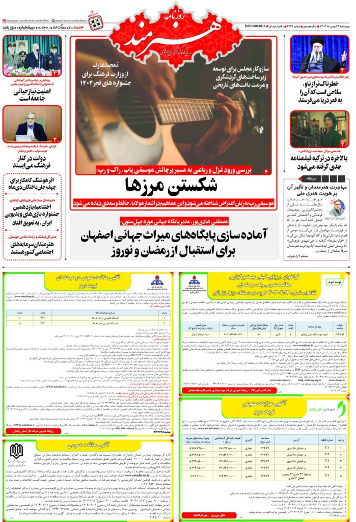 روزنامه «هنرمند» چهارشنبه 29 آبانماه ۱۴۰۴
