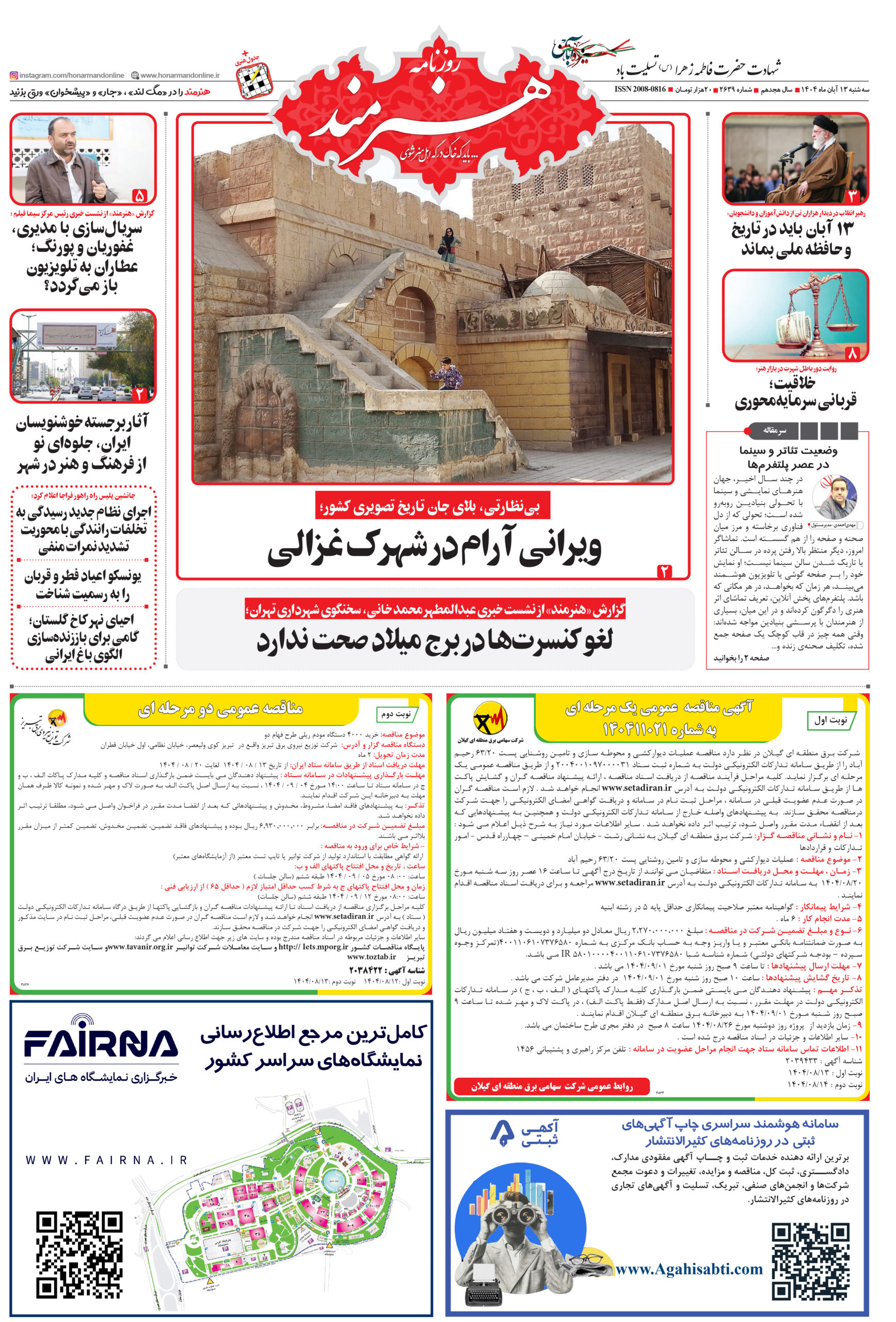 روزنامه «هنرمند» رسانه فرهنگ و هنر ایران