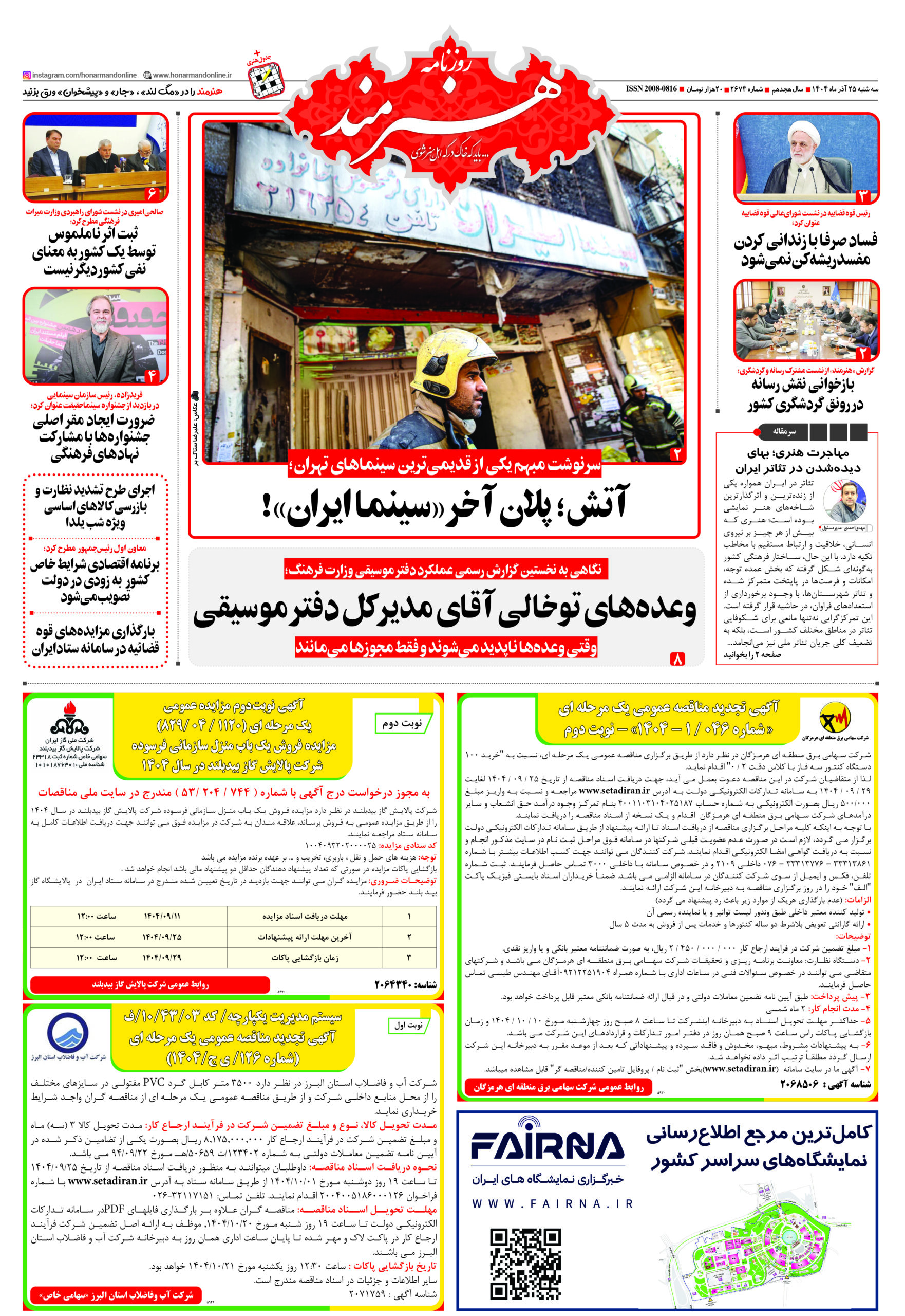 روزنامه «خوب» سهشنبه 25 آذرماه ۱۴۰۴