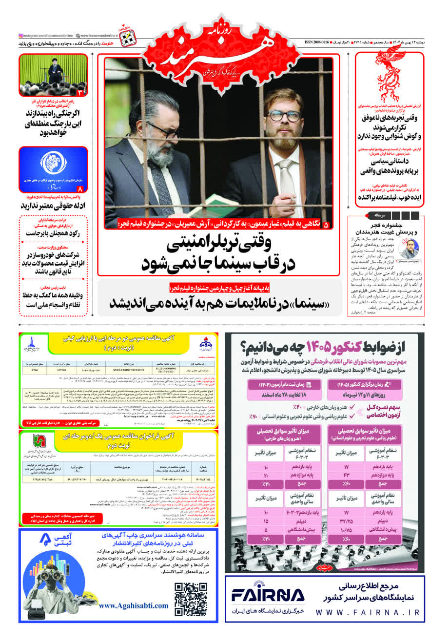روزنامه «هنرمند» دوشنبه 13 بهمنماه ۱۴۰۴
