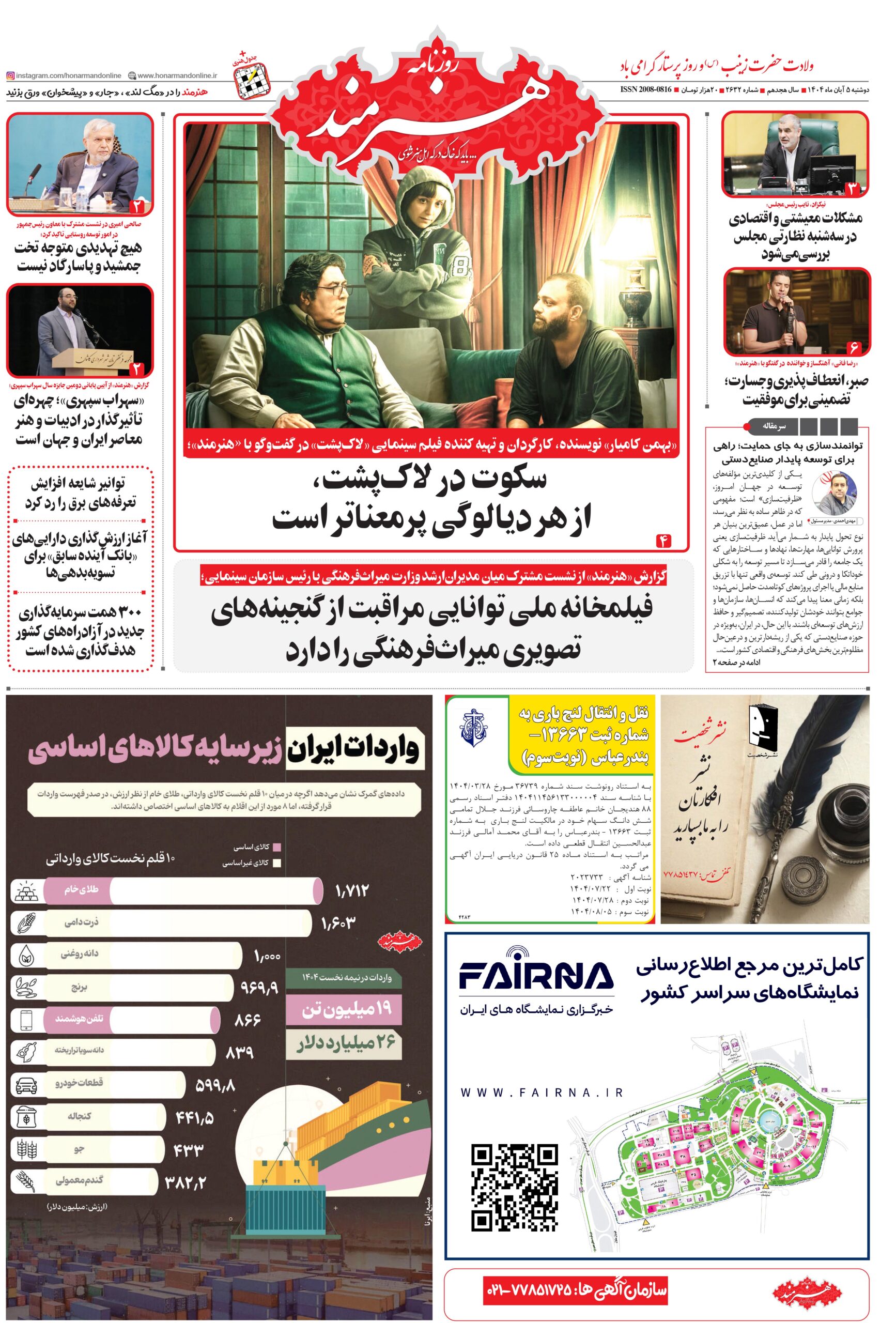 روزنامه «هنرمند» دوشنبه 5 آبانماه 1404