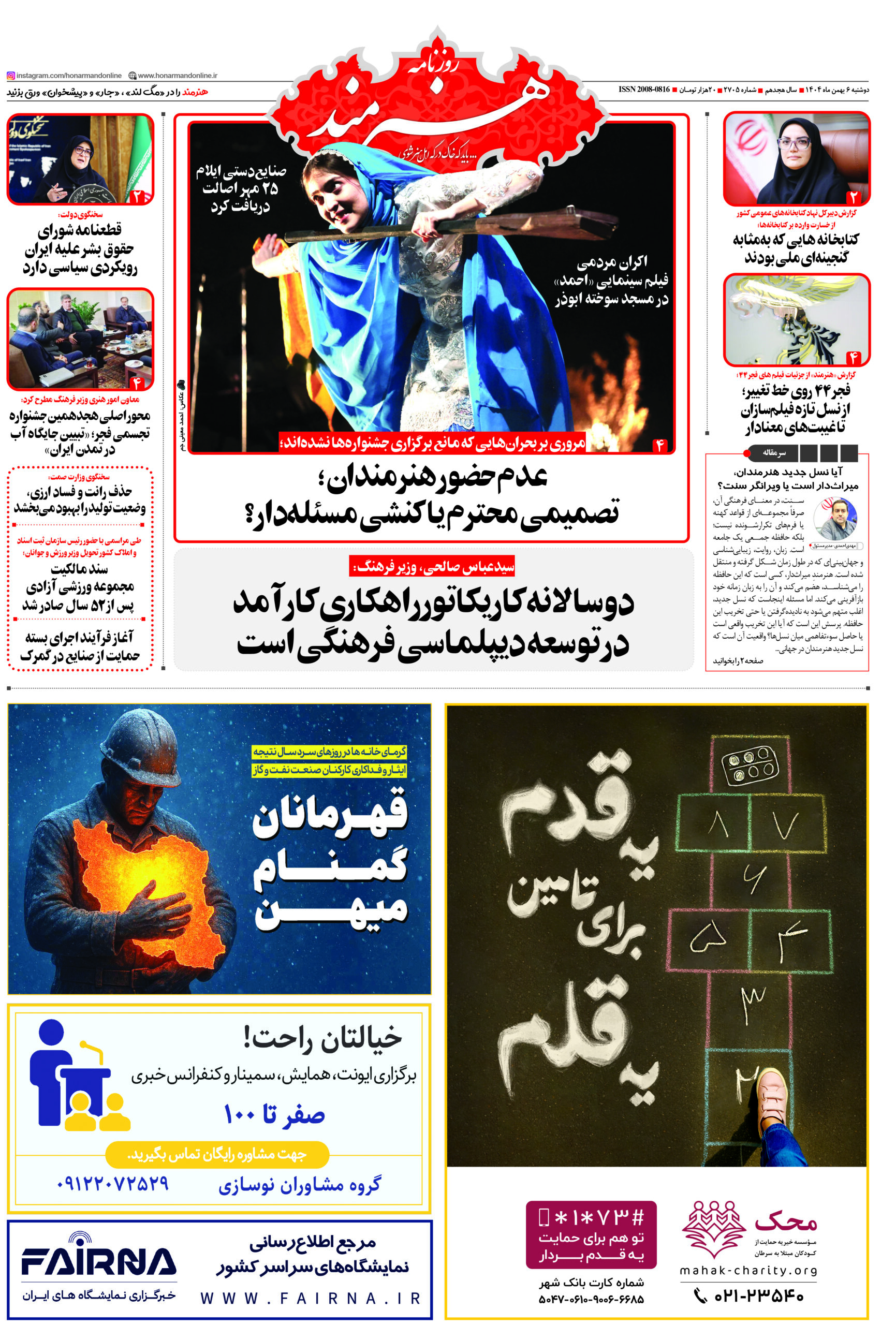 روزنامه «هنرمند» دوشنبه 6 بهمنماه ۱۴۰۴