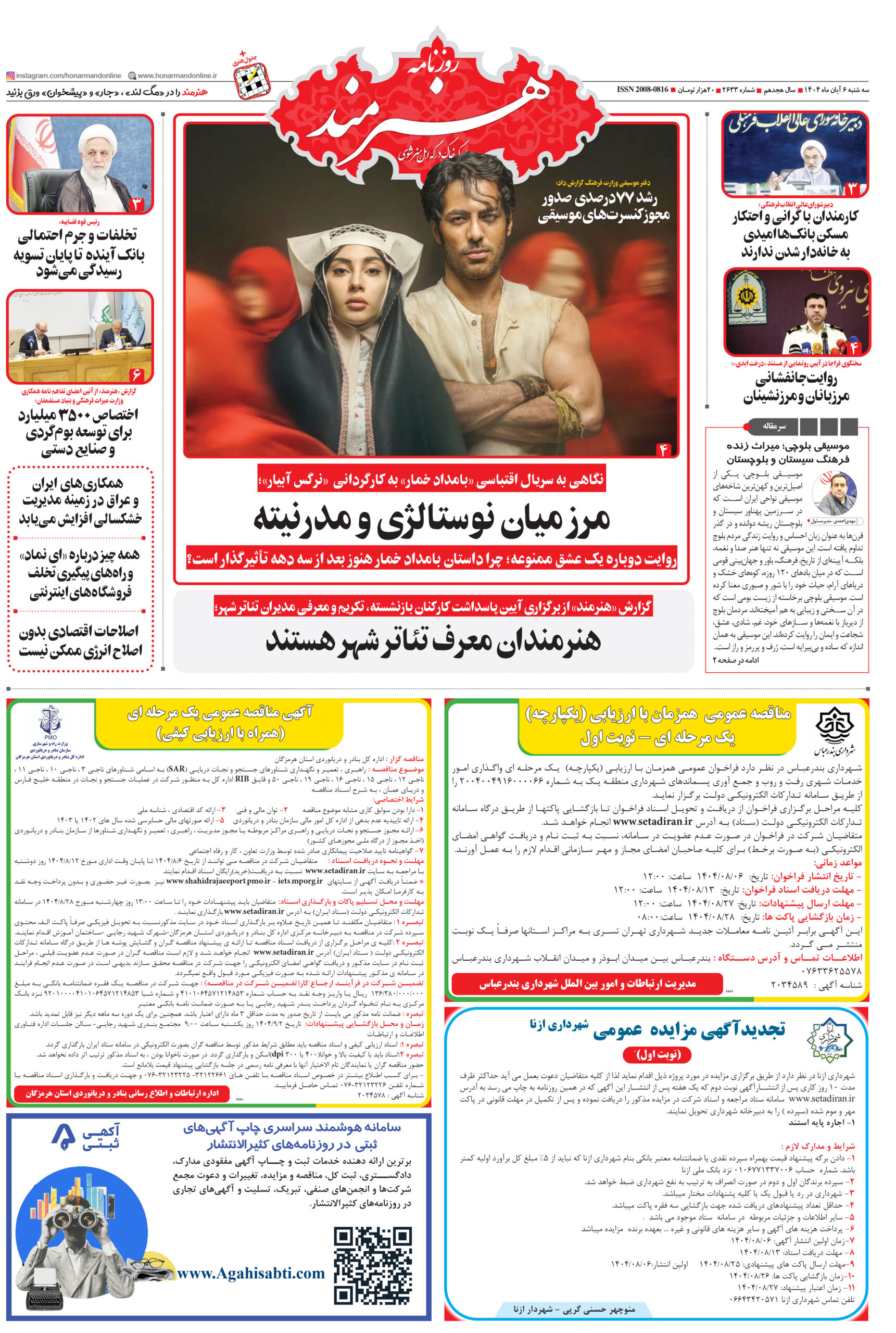 روزنامه «هنرمند» سهشنبه 6 آبانماه 1404