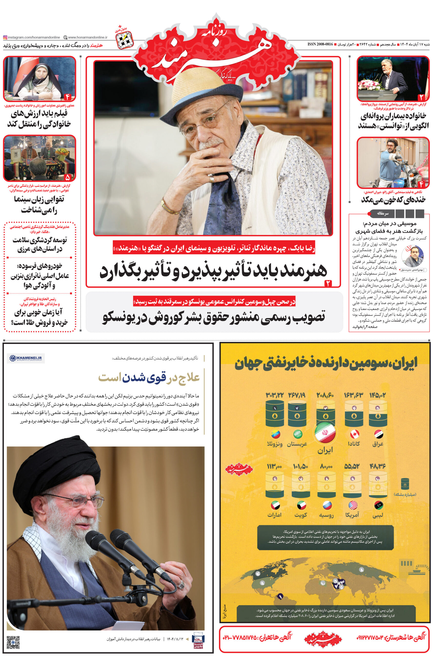 روزنامه «هنرمند» شنبه 17 آبانماه ۱۴۰۴