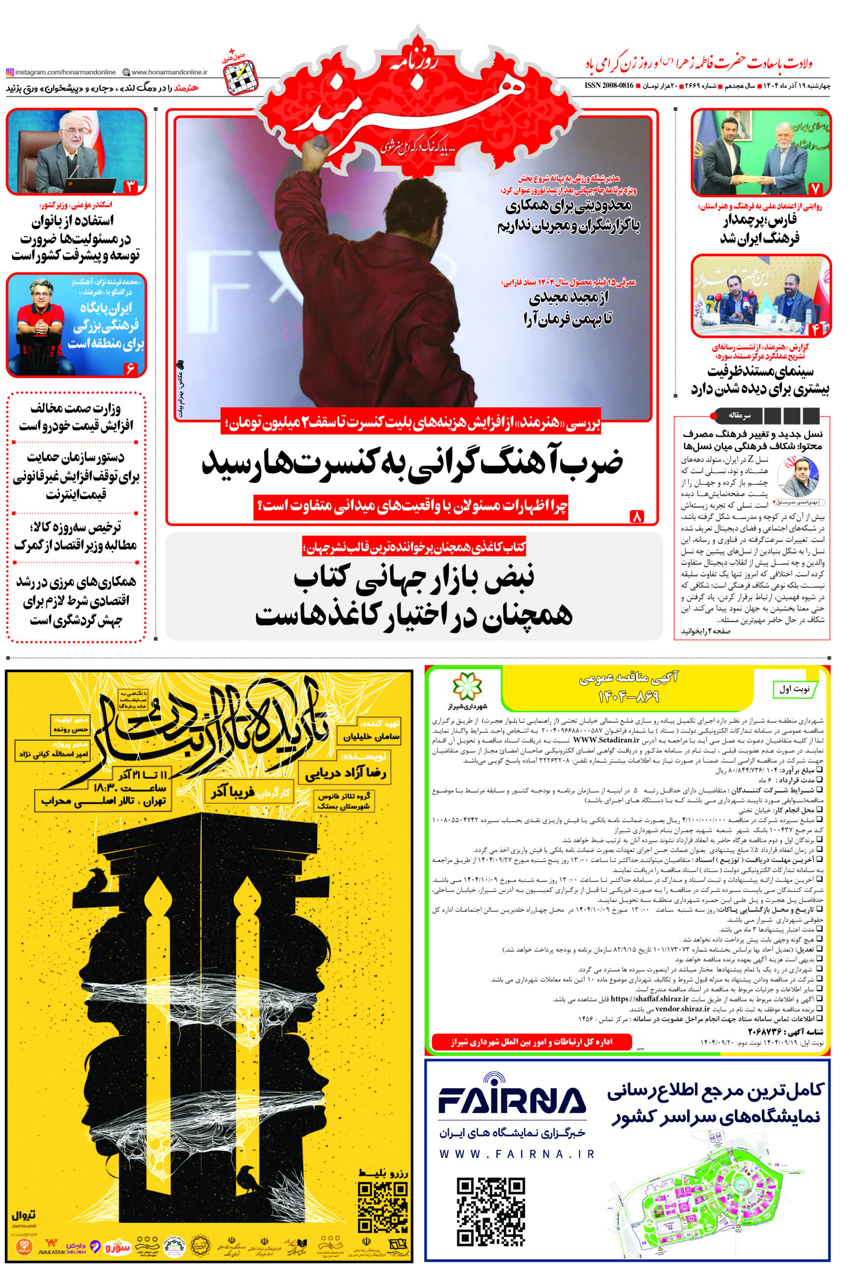 روزنامه «هنرمند» چهارشنبه 19 آذرماه ۱۴۰۴