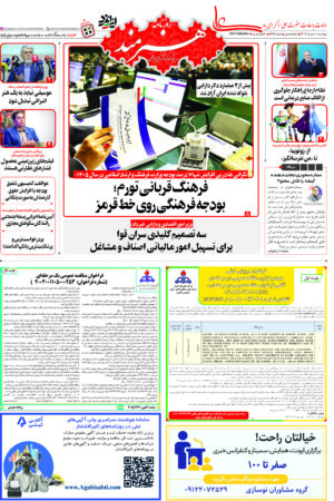 روزنامه «هنرمند» چهارشنبه 3 دیماه ۱۴۰۴