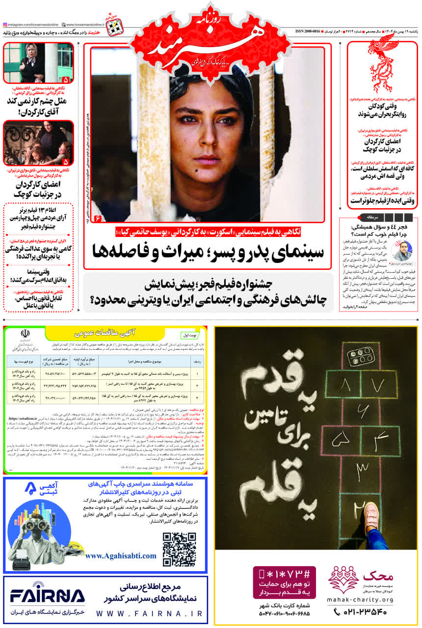 روزنامه «هنرمند» یکشنبه 19 بهمنماه ۱۴۰۴
